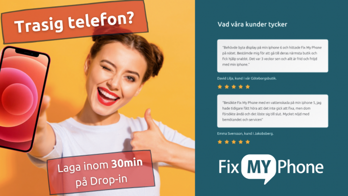 Laga iPhone i Linköping, Storgatan 28, Centrum. Här kan du reparera alla typer av skador på din mobil: iPhone, Samsung Galaxy, iPad Macbook eller någon annan mobiltelefon. Du är alltid välkommen in till oss på drop-in, oavsett problem. De flesta reparationerna på din telefon är klara på 30 minuter. Fix My Phone kan också reparera trasig iPad skärmar samt Apple Watch delar!
